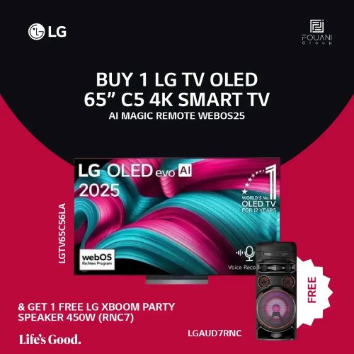 The LG C5 65″ OLED TV is part of LG’s 2025 C5 series of smart OLED TVs. It combines a 4K Ultra HD OLED display, powerful AI-driven image processing, and the latest webOS 25 smart platform — making it one of the most appealing TVs in its class for immersive visuals, smart streaming, and responsive gaming.